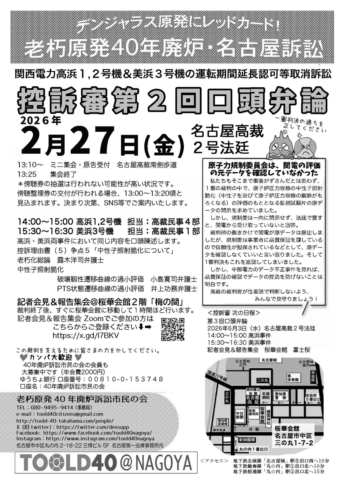 決まり次第、SNS等でご案内いたします。14:00〜15:00 高浜事件 担当:名古屋高裁民事4部